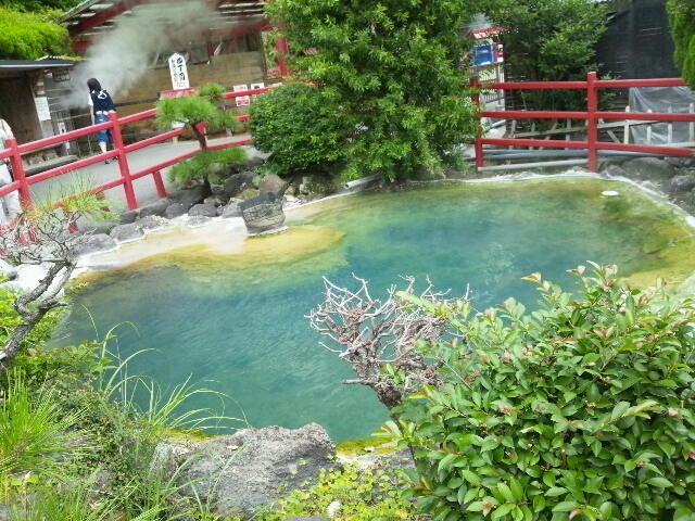 私は明礬(みょうばん)温泉に行きました。青色の湯に入れますよ!