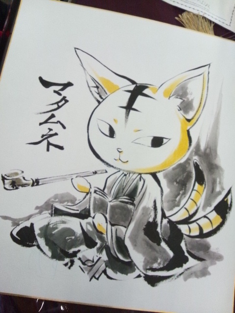 ちょうど持っていた、よく滲む色紙に墨で描いたのですが、良い雰囲気になりましたね。
