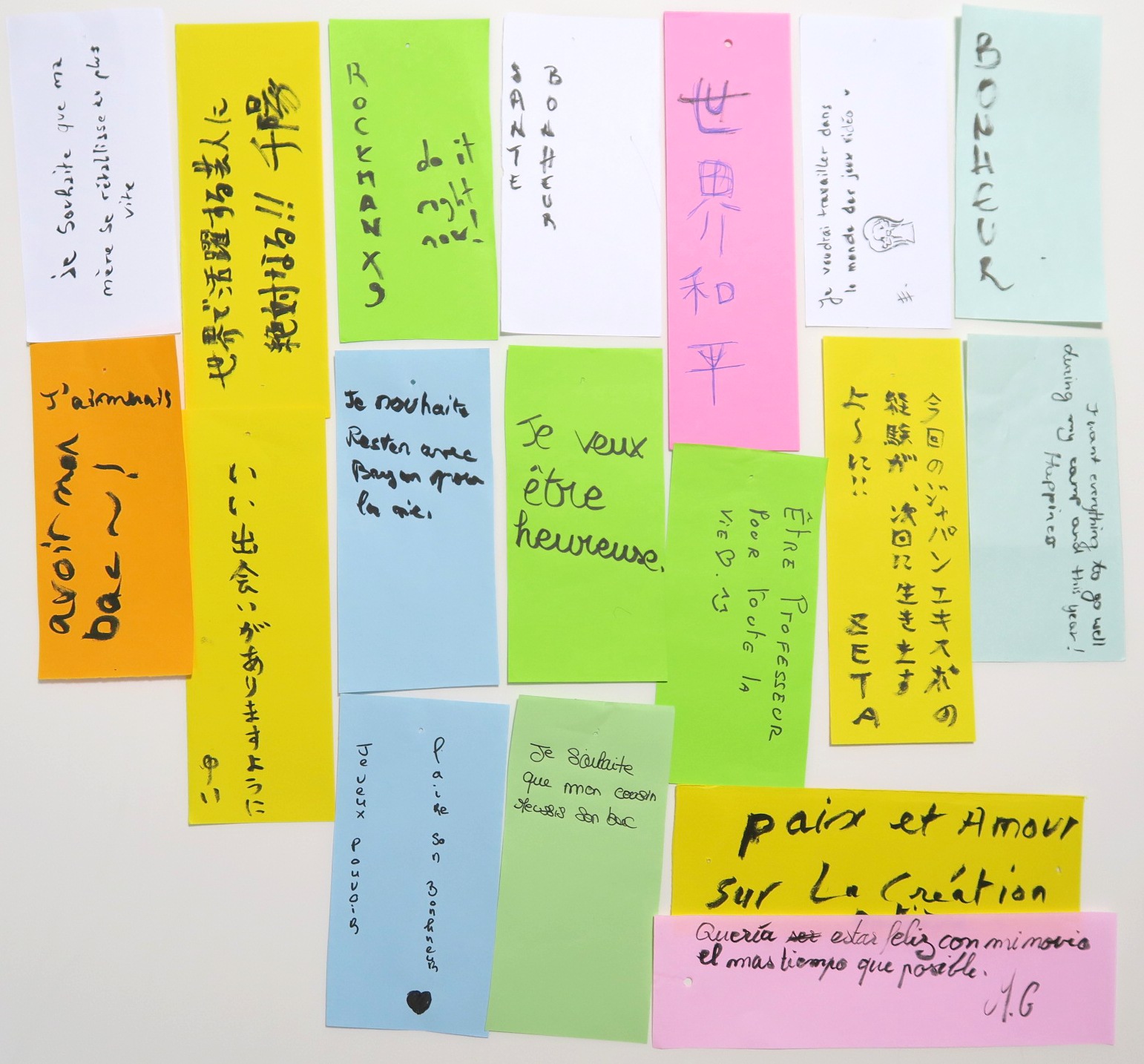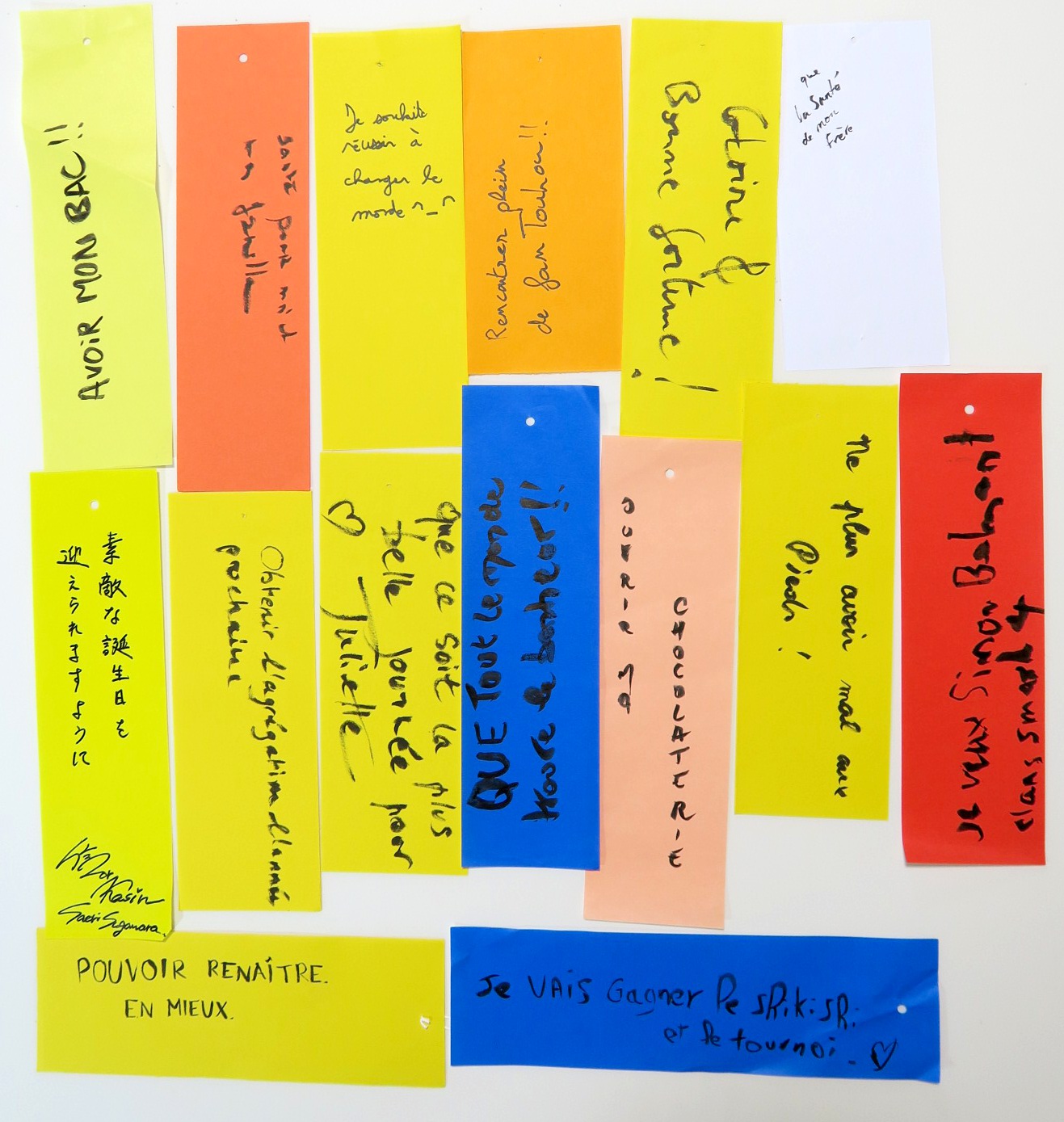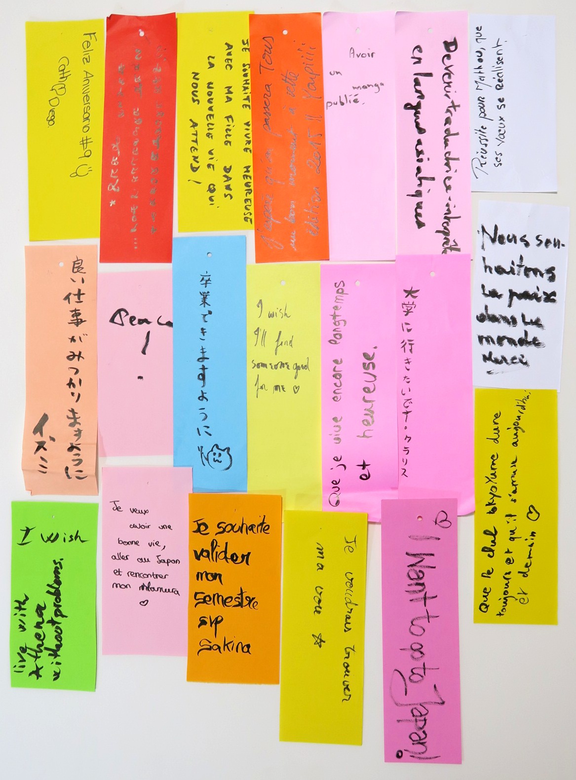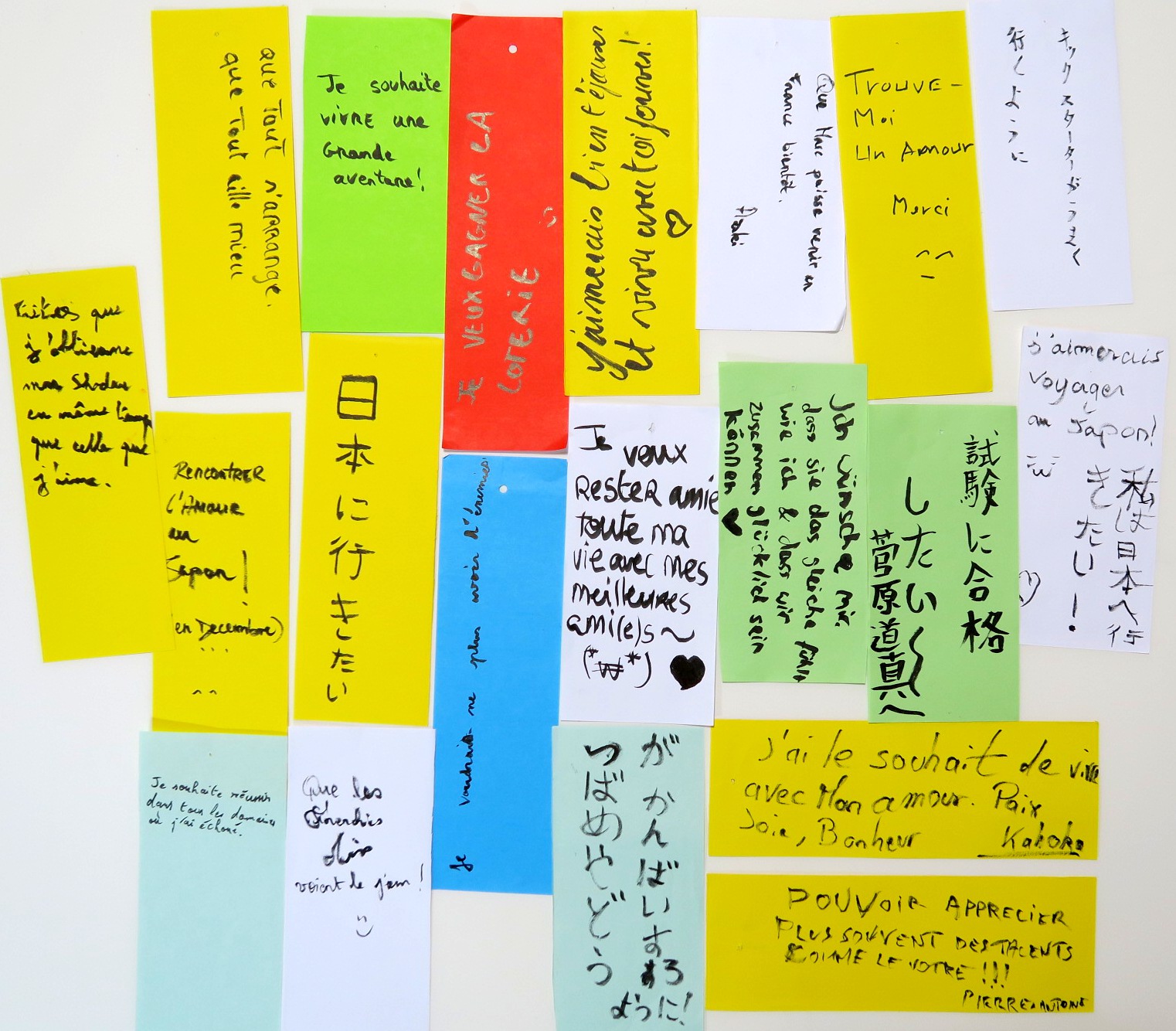 七夕の短冊はこんな感じでフランスの方々に書いてもらっていました。